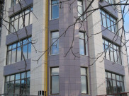 Навесной вентилируемый фасад выполнен на оцинкованной подсистеме «OLMA» с применением теплоизолирующего слоя толщиной 120мм.